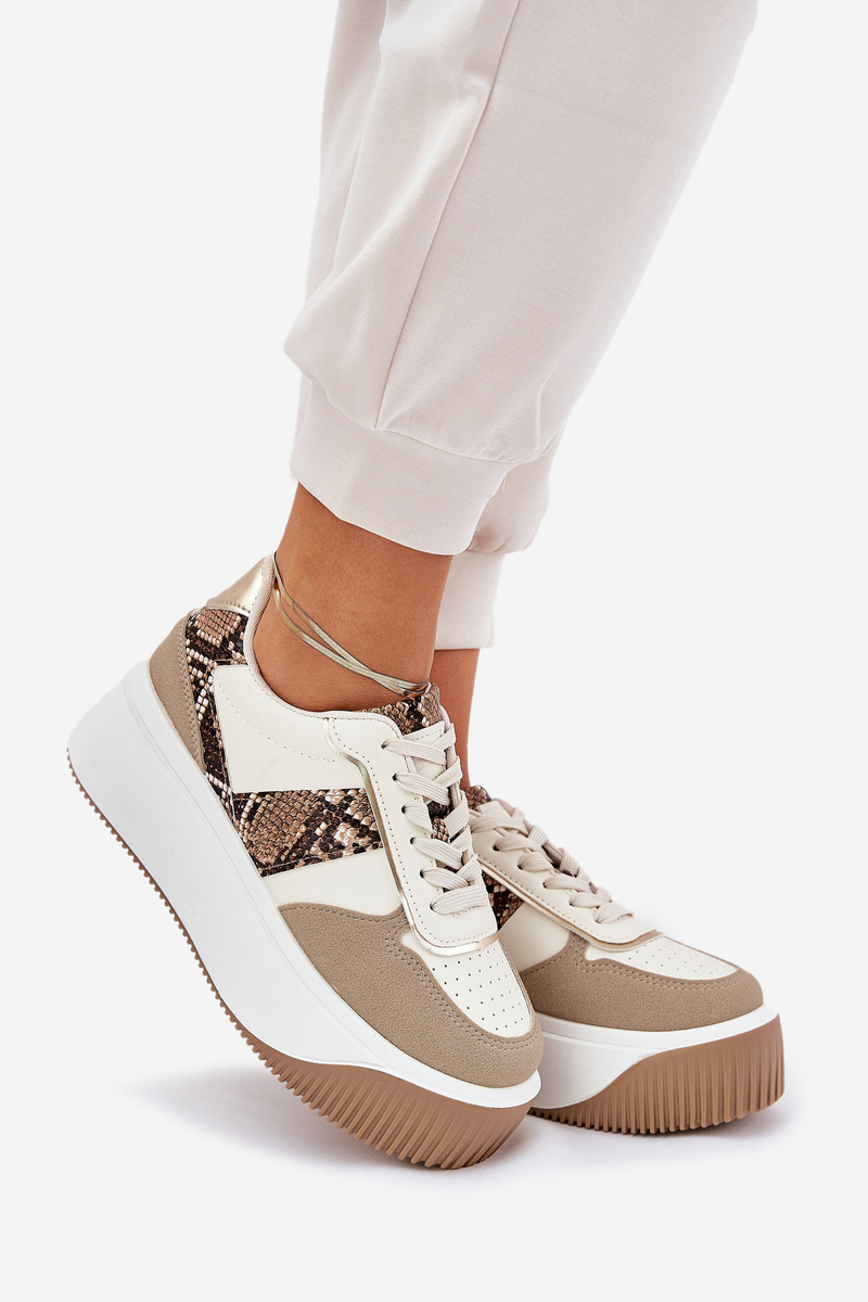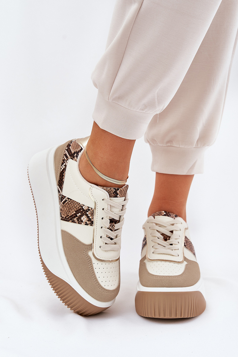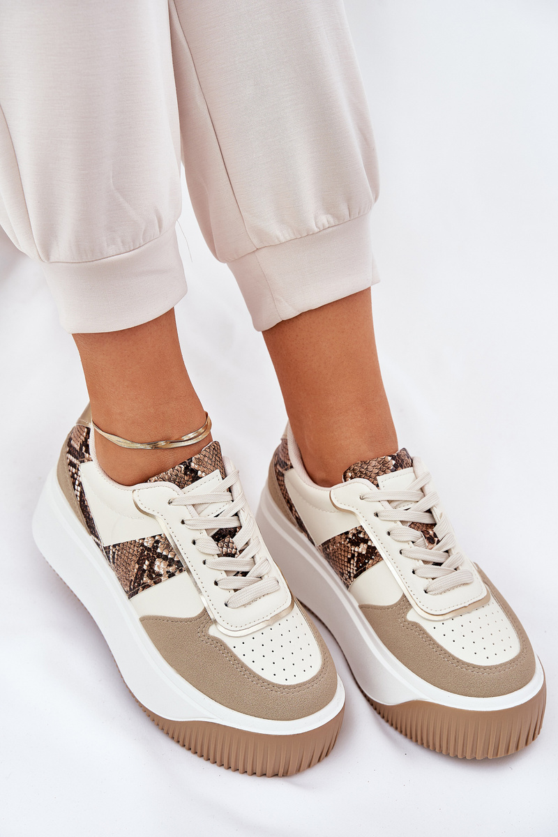 Damskie Sneakersy Na Platformie Ozdobione Zwierzęcym Wzorem Beżowe Telanila