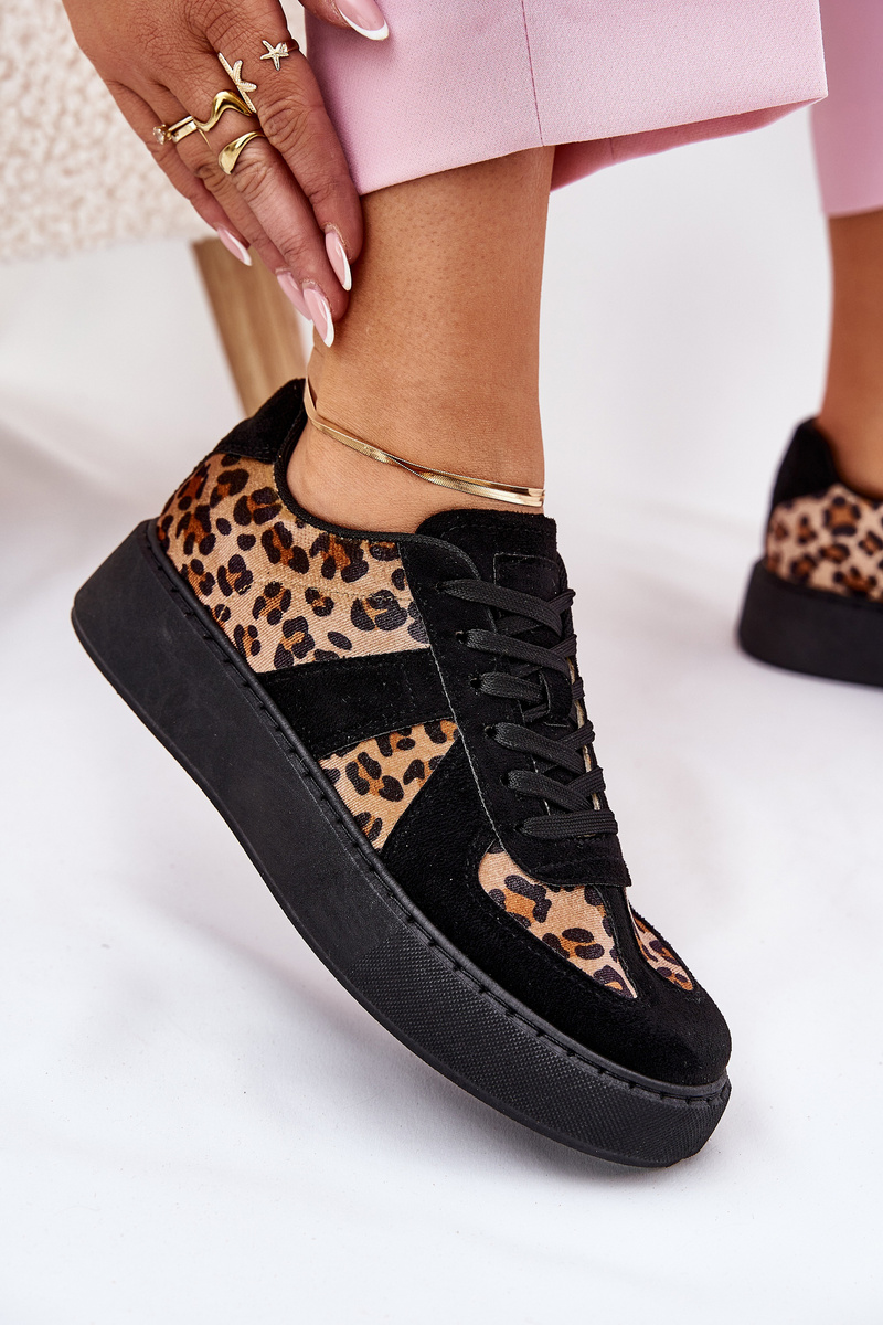 Damskie Sneakersy Na Platformie Panterka Czarne Nativira
