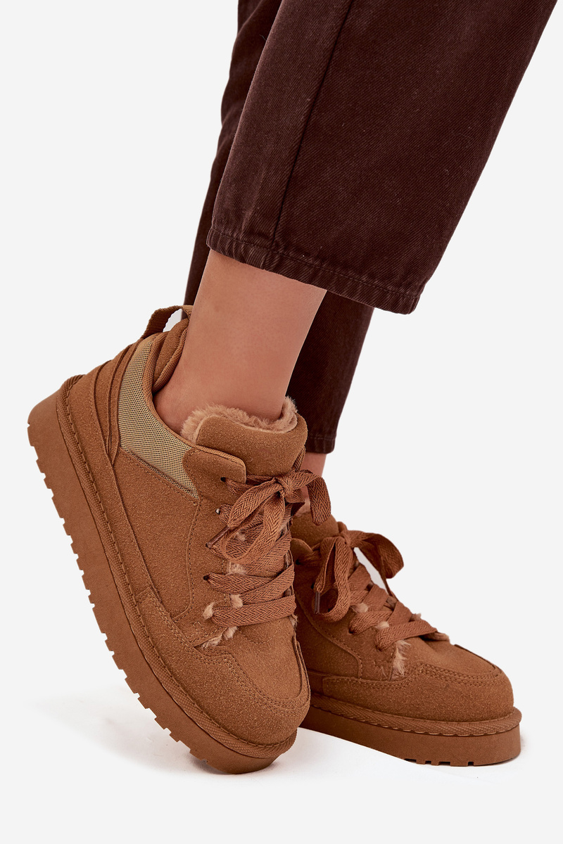 Damskie Sneakersy Ocieplane Futerkiem Camel Cyrissa
