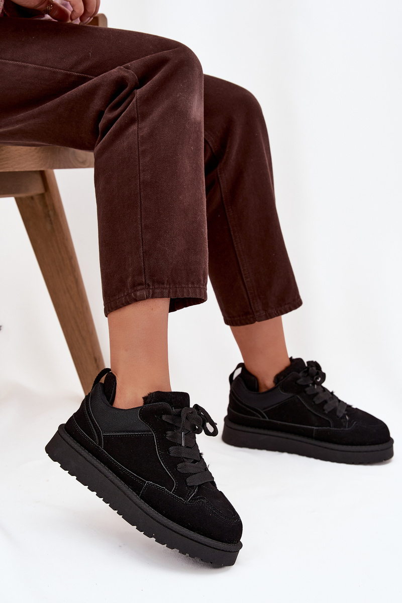 Damskie Sneakersy Ocieplane Futerkiem Czarne Cyrissa
