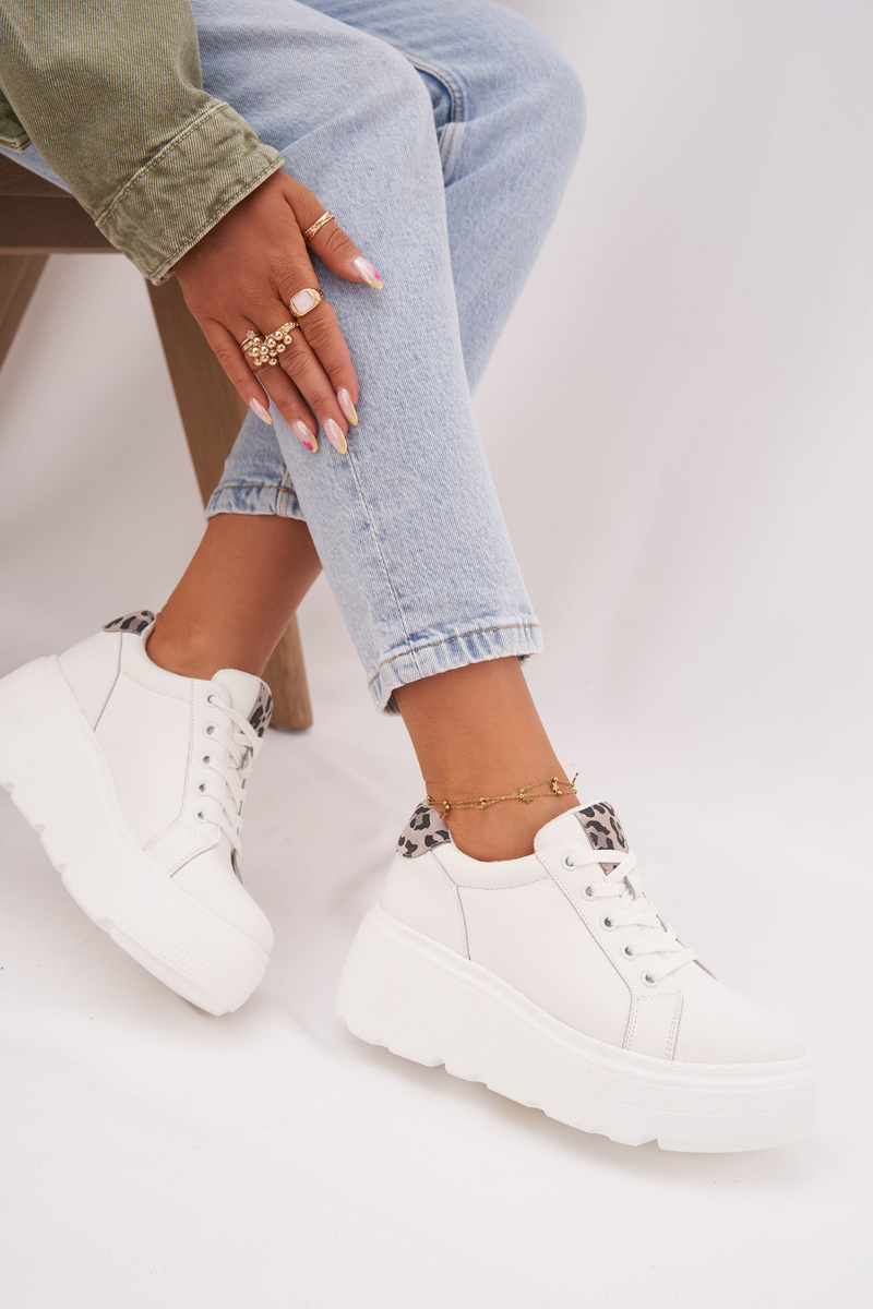 Damskie Sneakersy Skóra Platforma Panterka Białe Vinceza 89144
