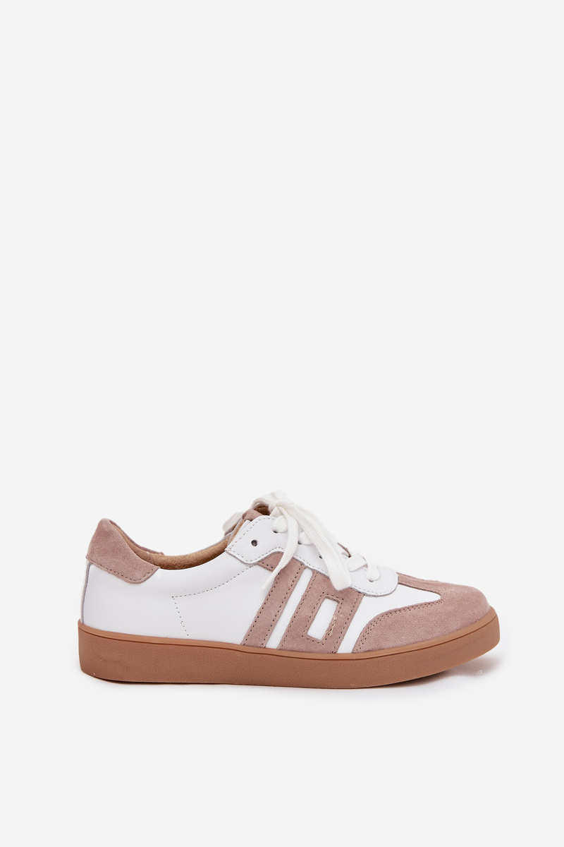 Damskie Sneakersy Skórzane Biało-Beżowe Vinceza 79557