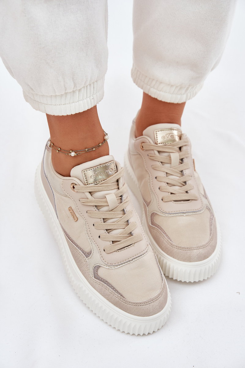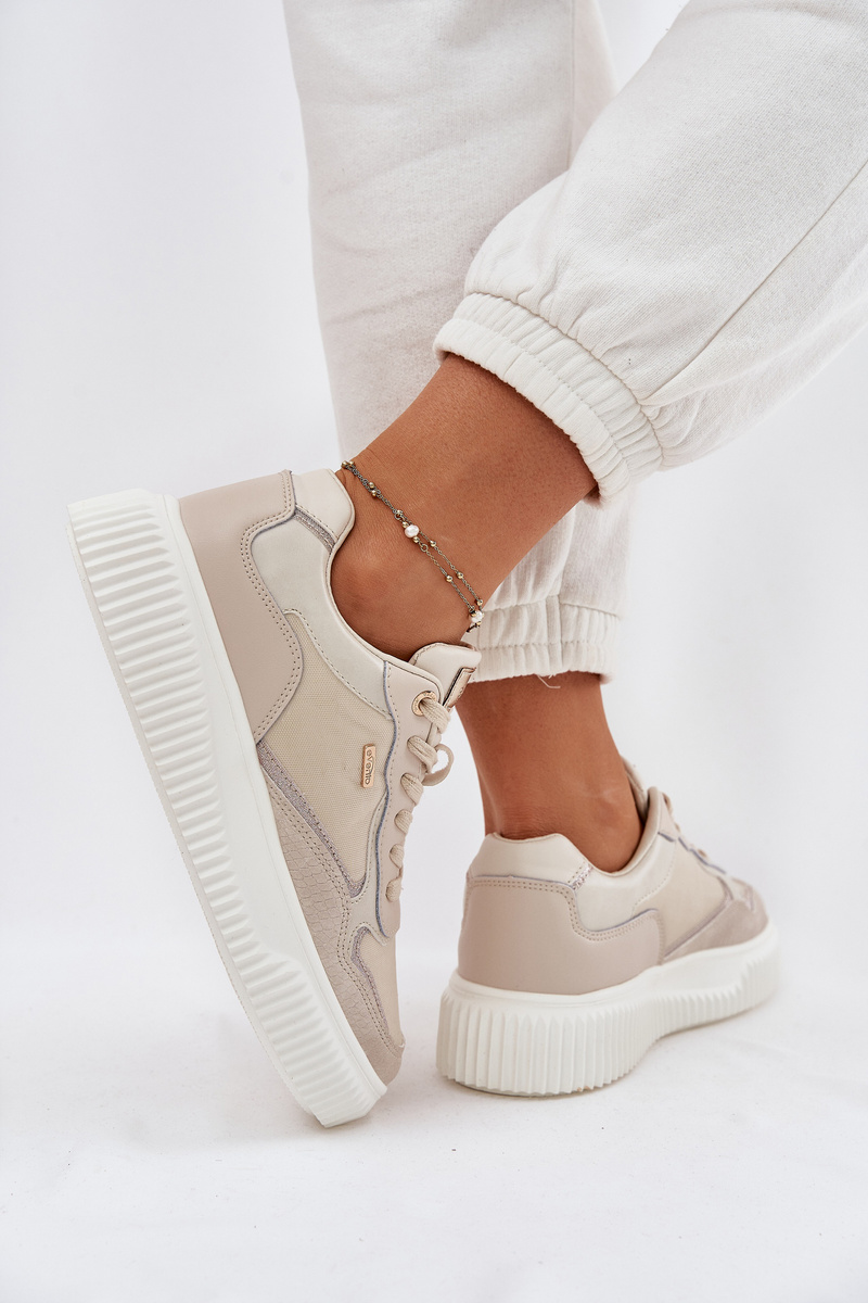 Damskie Sneakersy Skórzane Na Platformie Beżowe Velarria