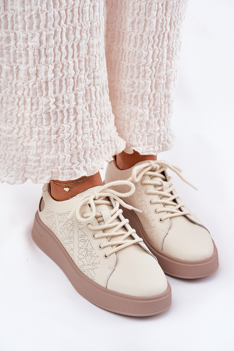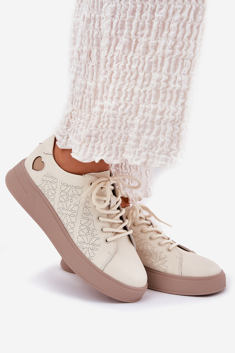 Damskie Sneakersy Z Naturalnej Skóry Na Platformie Beżowe Vinceza 88018