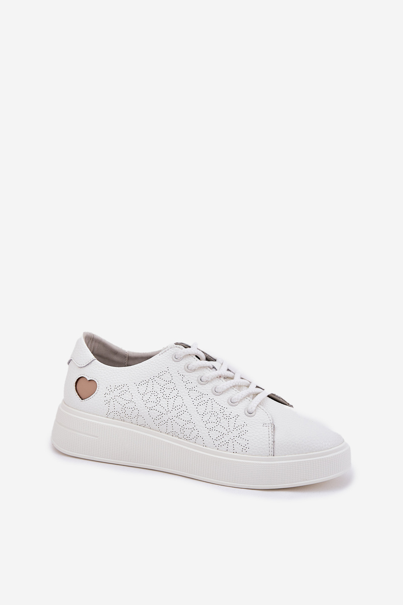 W szafie każdej kobiety powinna znaleźć się para wygodnych butów sportowych. Buty te wyróżniają się wygodą w użytkowaniu oraz wysoką jakością wykonania. Płaska podeszwa na delikatnej platformie świetnie izoluje od podłoża. Wykorzystasz je w wielu sytuacjach – podczas joggingu, spaceru czy spotkania ze znajomymi. Sneakersy marki Vinceza. Wykonane z naturalnej skóry. Osadzone na platformie. Noski zaokrąglone. Model klasycznie sznurowany. Miękka, skórzana wkładka zapewni wygodę i odpowiednią amortyzację. Model ten wyróżnia delikatny ażurowy wzór na cholewce oraz serce.