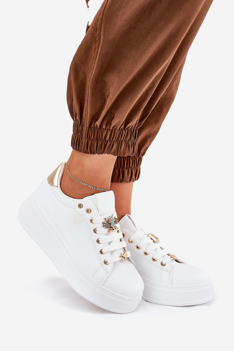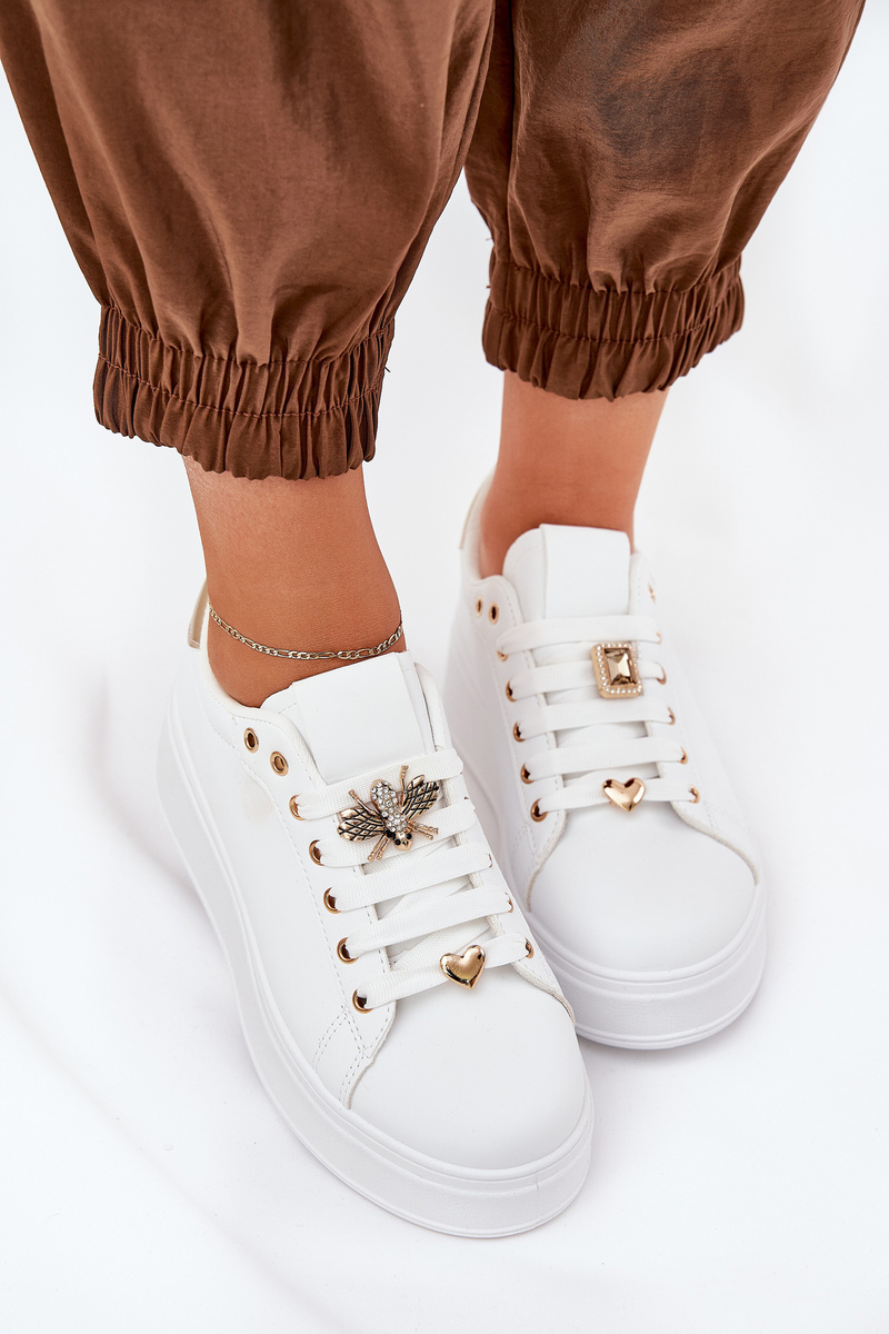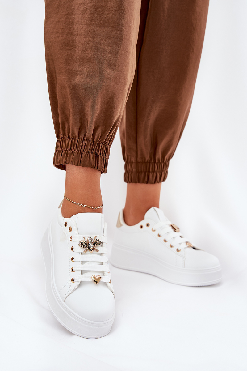 Damskie Sneakersy Z Przypinkami Na Platformie Białe Ilanina