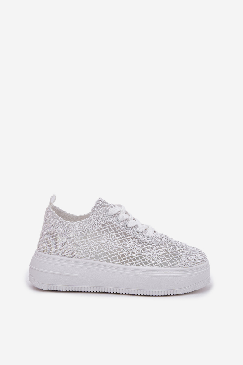Damskie Sneakersy Z Szydełkową Cholewką Na Platformie Białe Mirietto