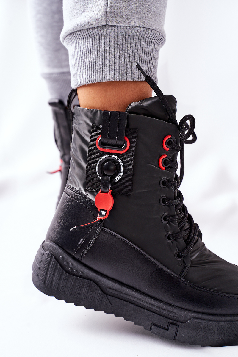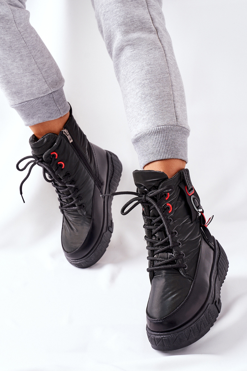 Damskie ocieplane śniegowce wykonane ze skóry ekologicznej. Sznurowane oraz zapinane na zamek. Idealne na zimę.