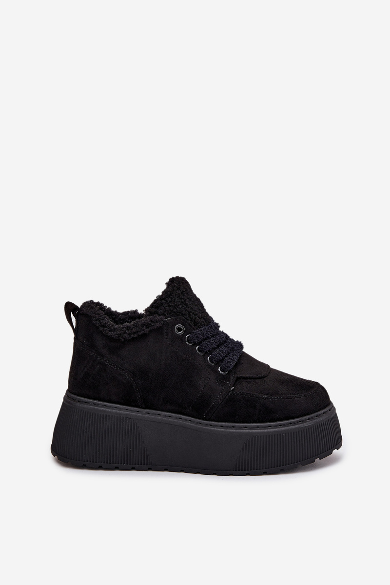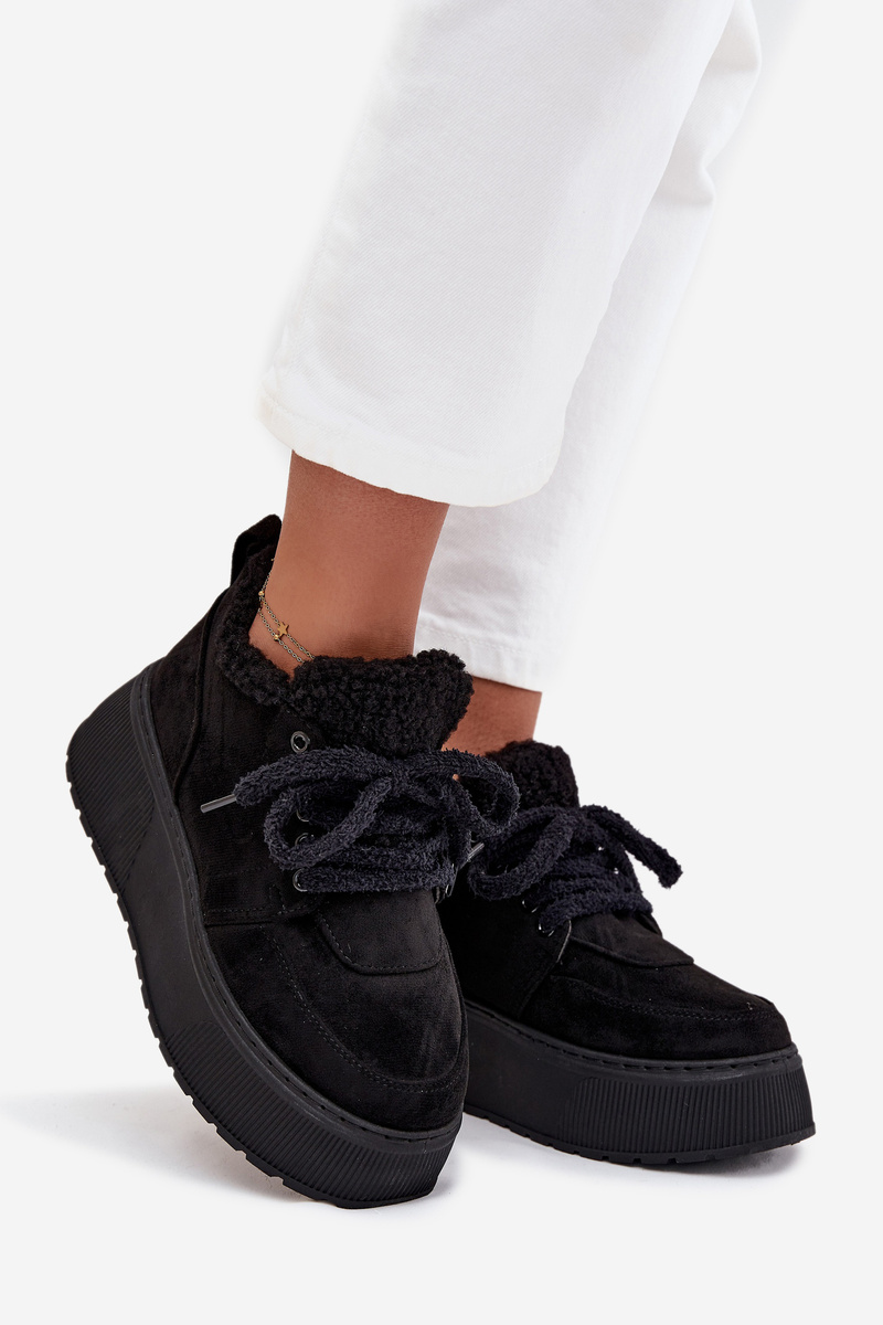 Damskie Śniegowce Futerko Typu Baranek Platforma Czarne Luma