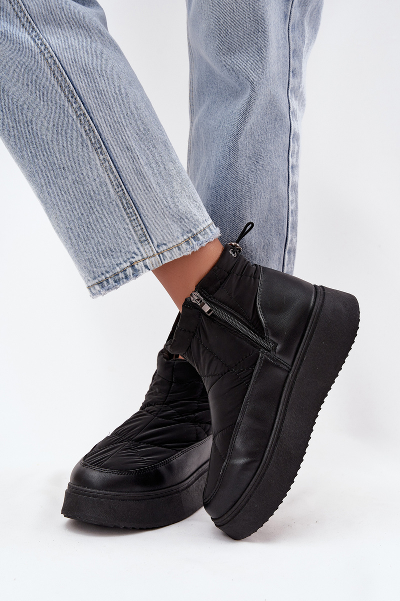 Damskie Śniegowce Ocieplane Futerkiem Platforma Czarne Tahlira
