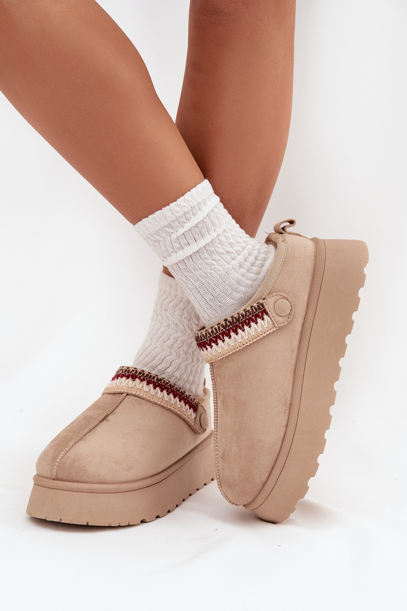 Damskie Śniegowce Platforma Ruchomy Pasek Haft Niskie Jasnobeżowe Lyrisse