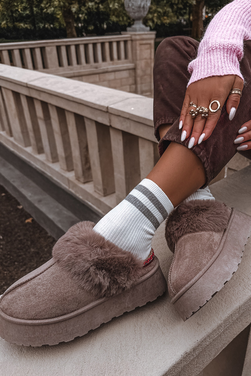Damskie śniegowce z eko zamszu to modny i praktyczny wybór na zimowe dni. Stylową całość uzupełnia haftowana lamówka, która dodaje oryginalności. Solidna platforma z gumowego tworzywa dobrze izoluje od zimnego podłoża, a wnętrze wyściełane miękkim futerkiem gwarantuje ciepło i wygodę. To model, który świetnie sprawdzi się zarówno w codziennych spacerach, jak i w zimowych stylizacjach. Przy wyborze rozmiaru prosimy kierować tabelą rozmiarów.