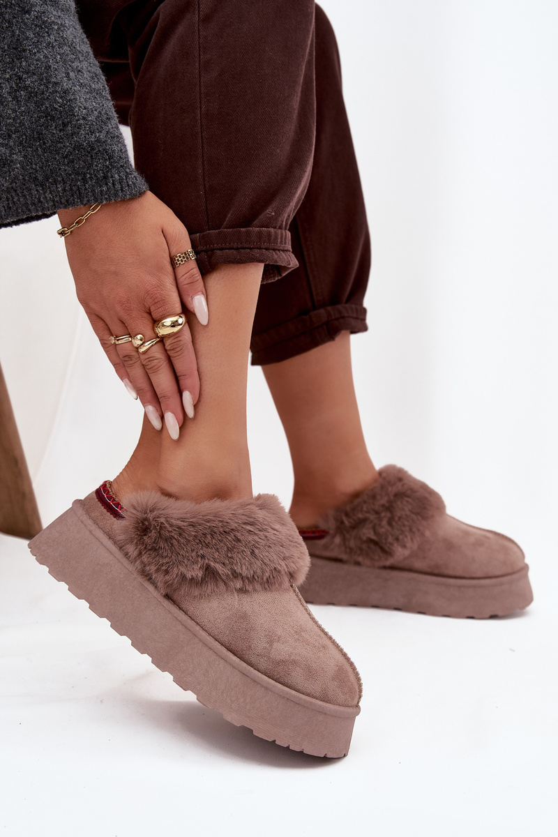 Damskie Śniegowce Z Haftem I Futerkiem Ciemnobeżowe Querina
