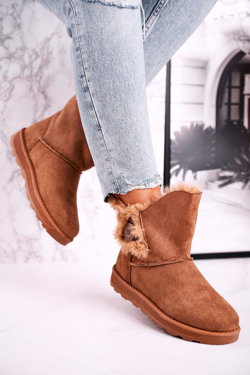 Damskie Śniegowce Zamszowe z Futerkiem Brązowe Button
