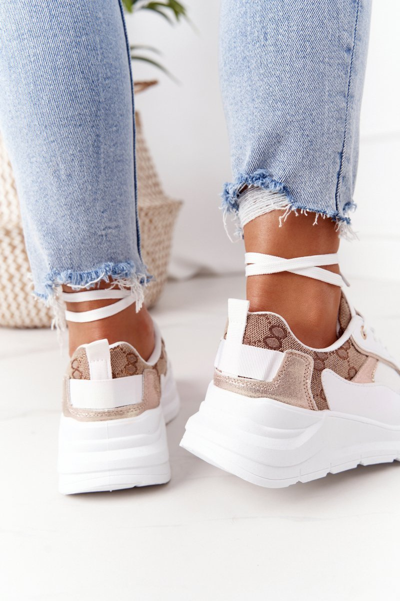 Damskie Sportowe Buty Sneakersy Biało-Złote Melanie