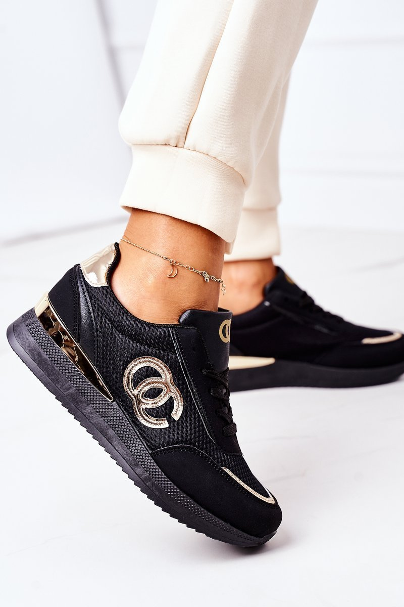Damskie Sportowe Buty Sneakersy Czarno-Złote Under Control