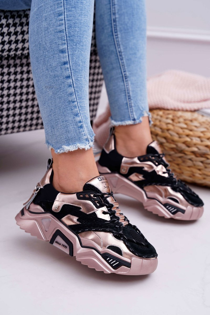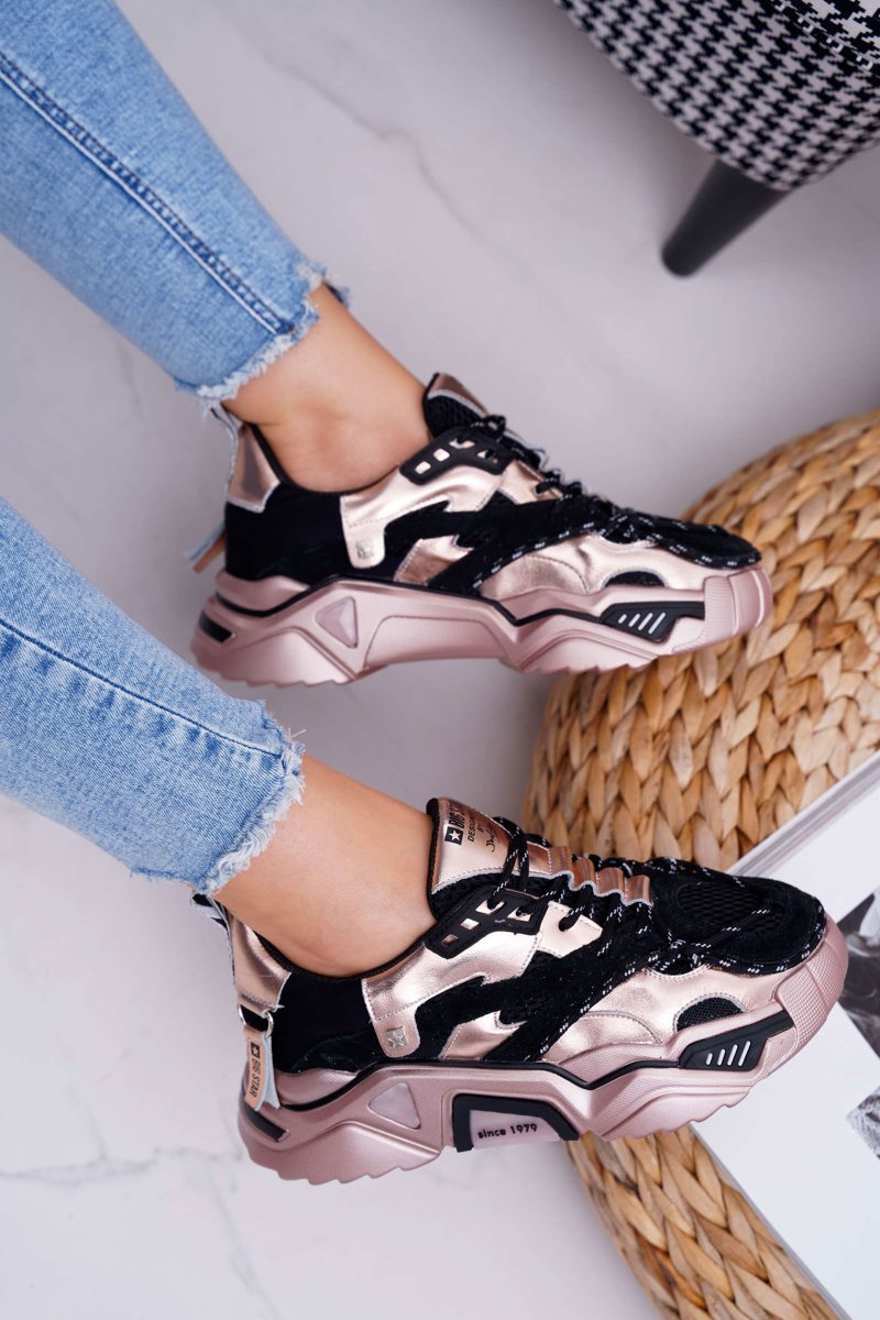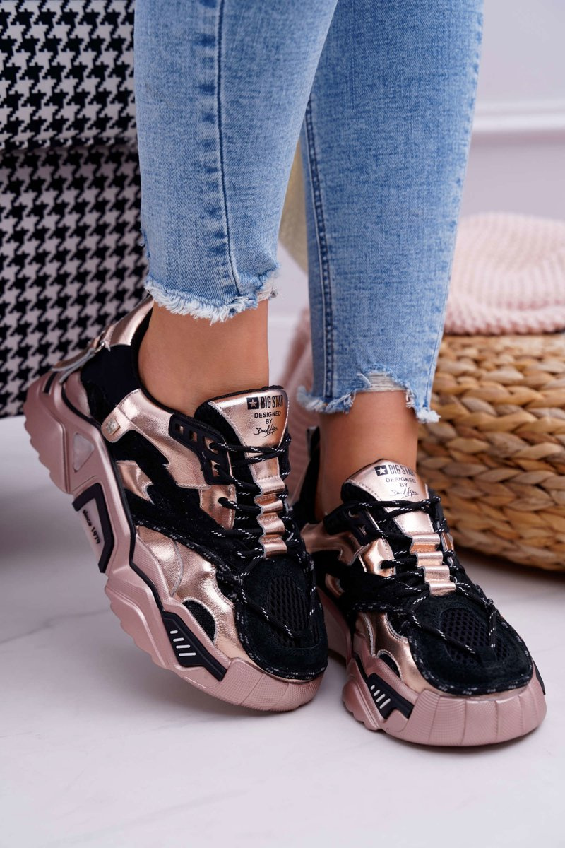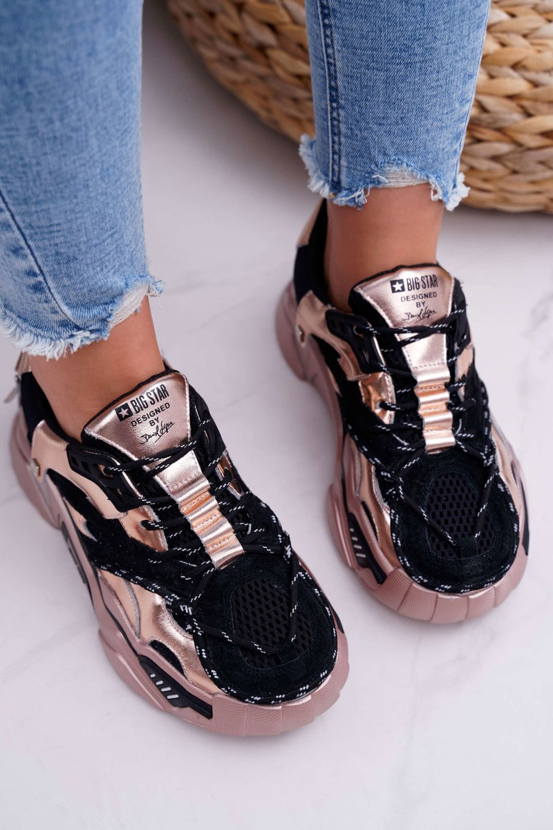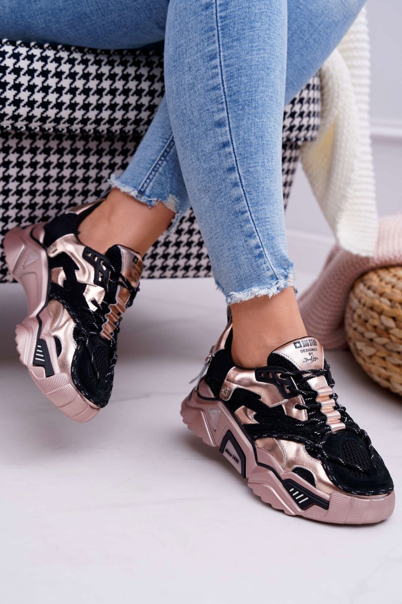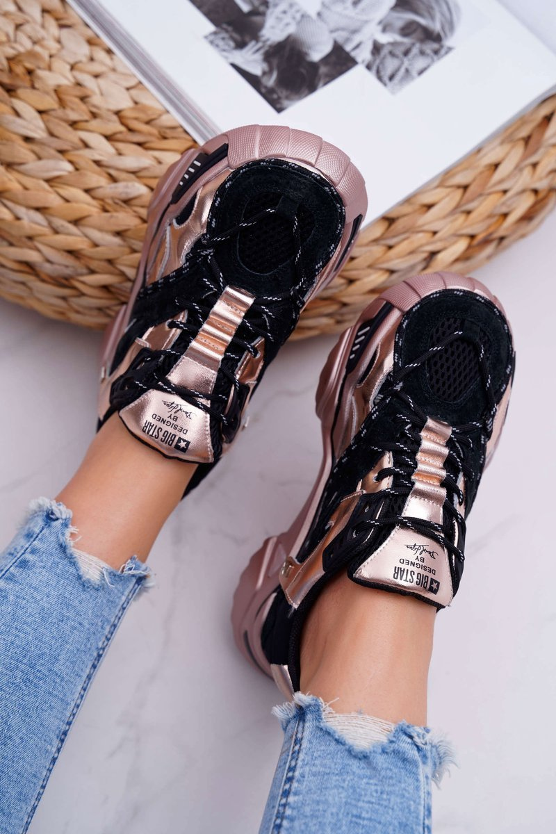 Damskie Sportowe Obuwie Big Star by Daniel Lopez Czarno Złote FF274A528