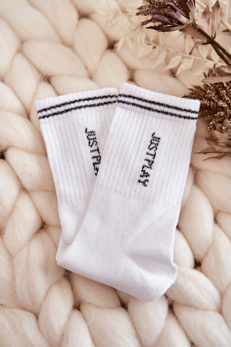 Damskie Sportowe Skarpety Pionowy Napis Just Play Białe