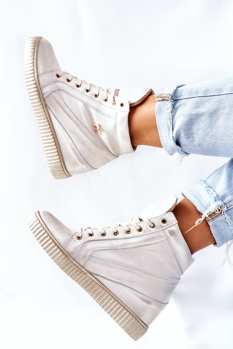 Damskie Sportowe Skórzane Buty Lewski Złote 3079