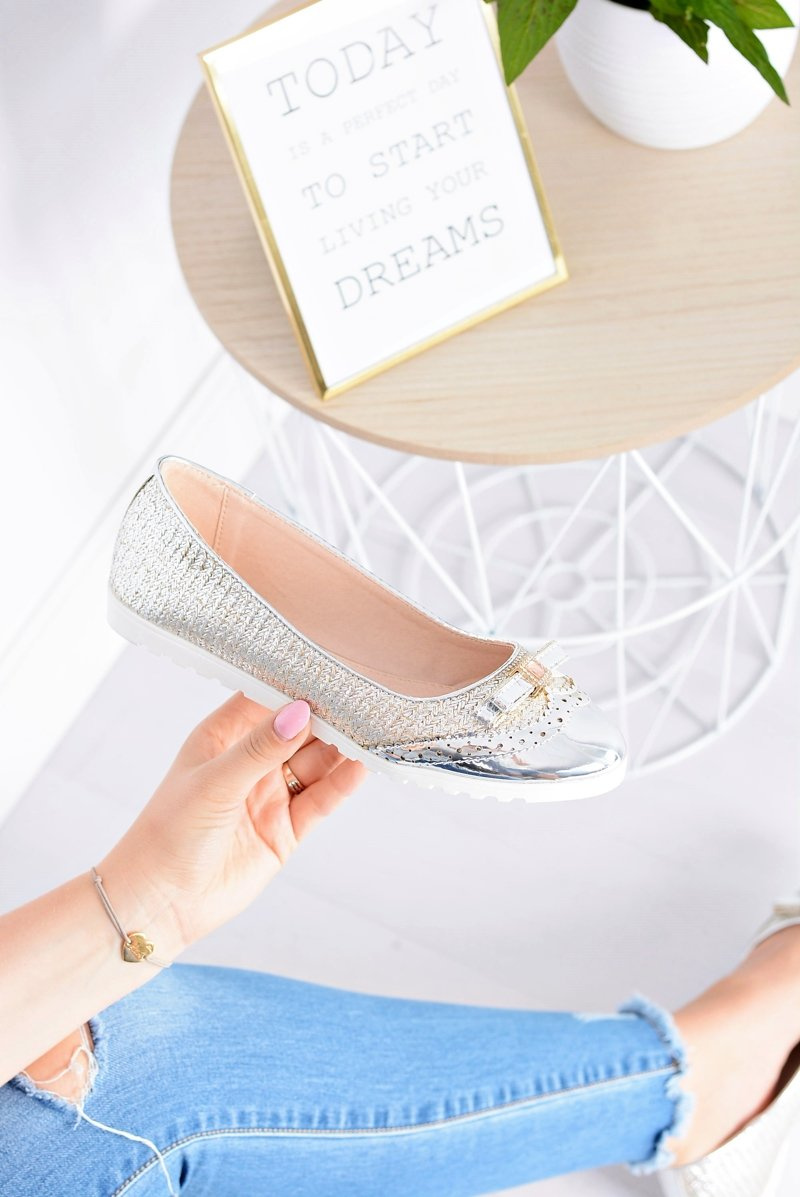 Opinie o Damskie Srebrne Wsuwane Balerinki Z Kokardką Cleoss