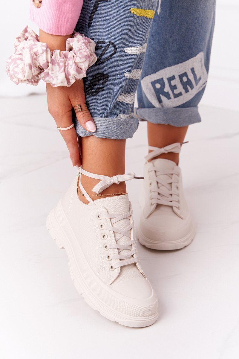 Damskie Trampki Na Platformie Beżowe Travel Time