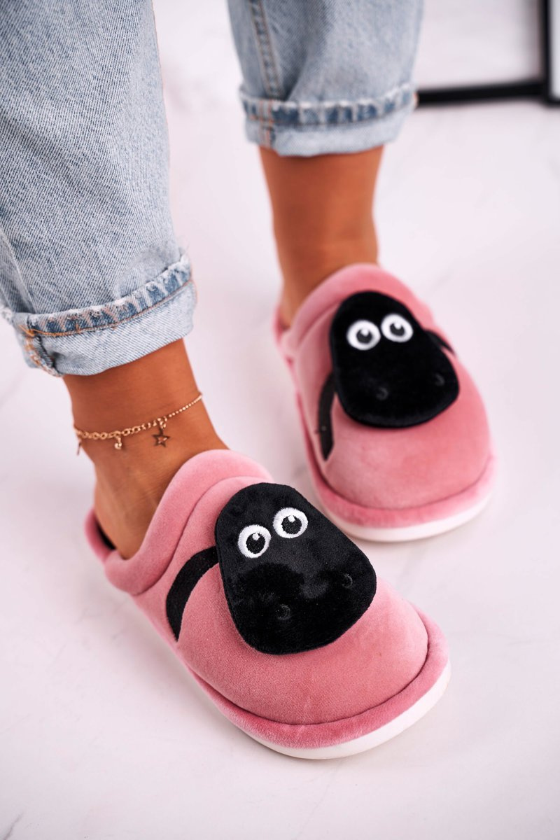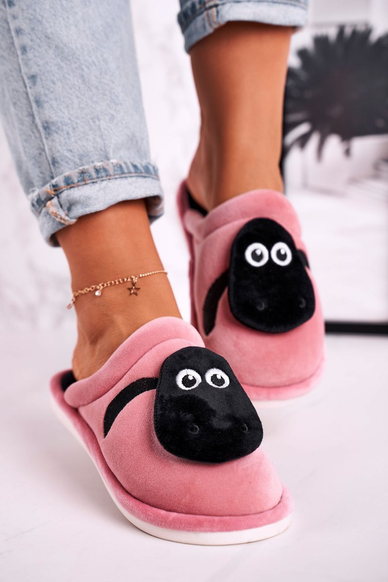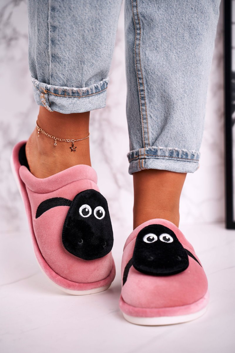 Damskie Welurowe Papcie Z Owieczką Pudrowy Róż Charlie