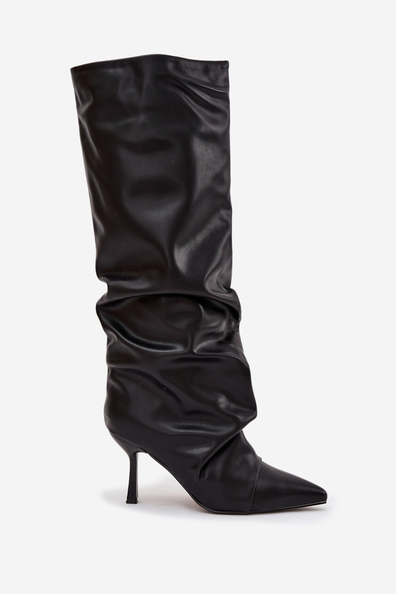 Damskie Wsuwane Kozaki Ocieplane Szpilka Marszczenie Czarne Angelica