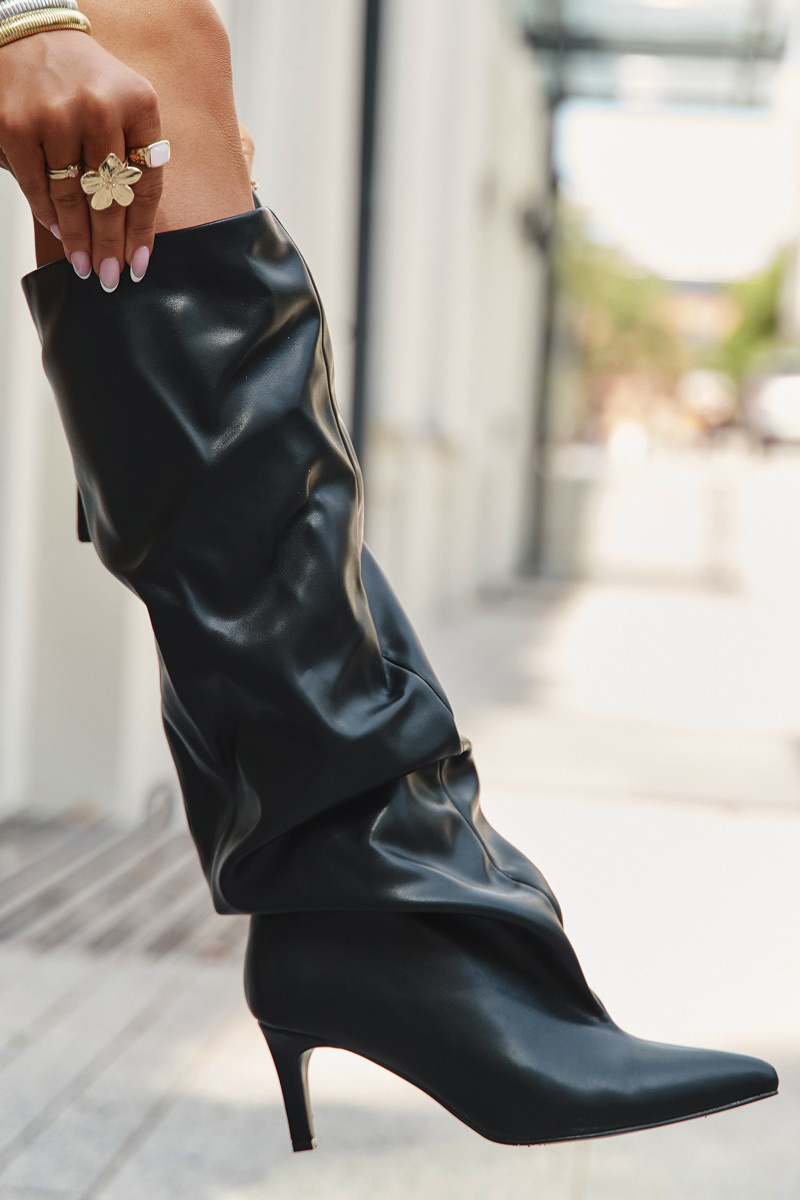 Damskie Wsuwane Kozaki Szpilka Marszczenie Czarne Rosivine