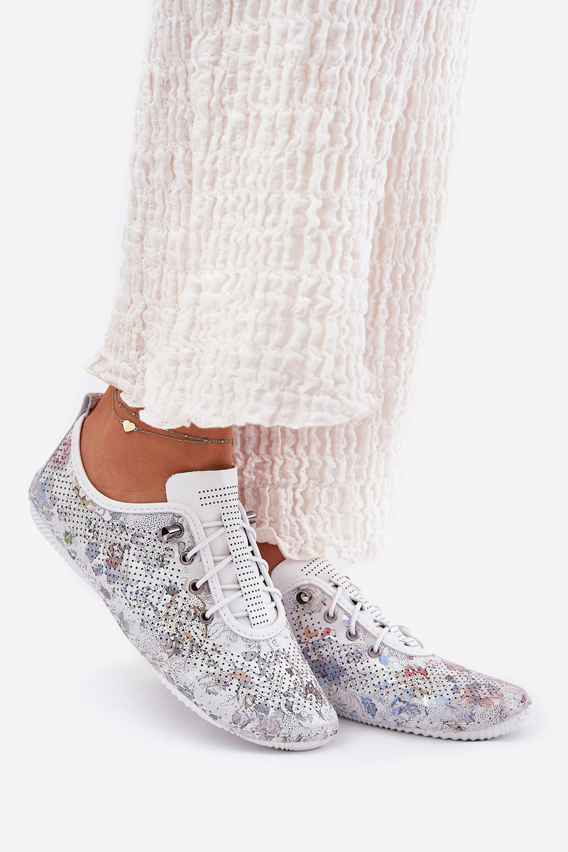 Damskie Wzorzyste Półbuty Skóra Naturalna Białe Artiker 56C2688