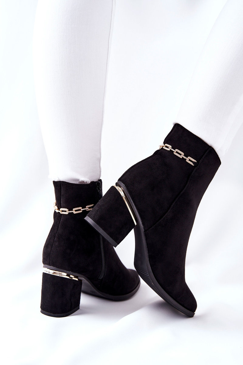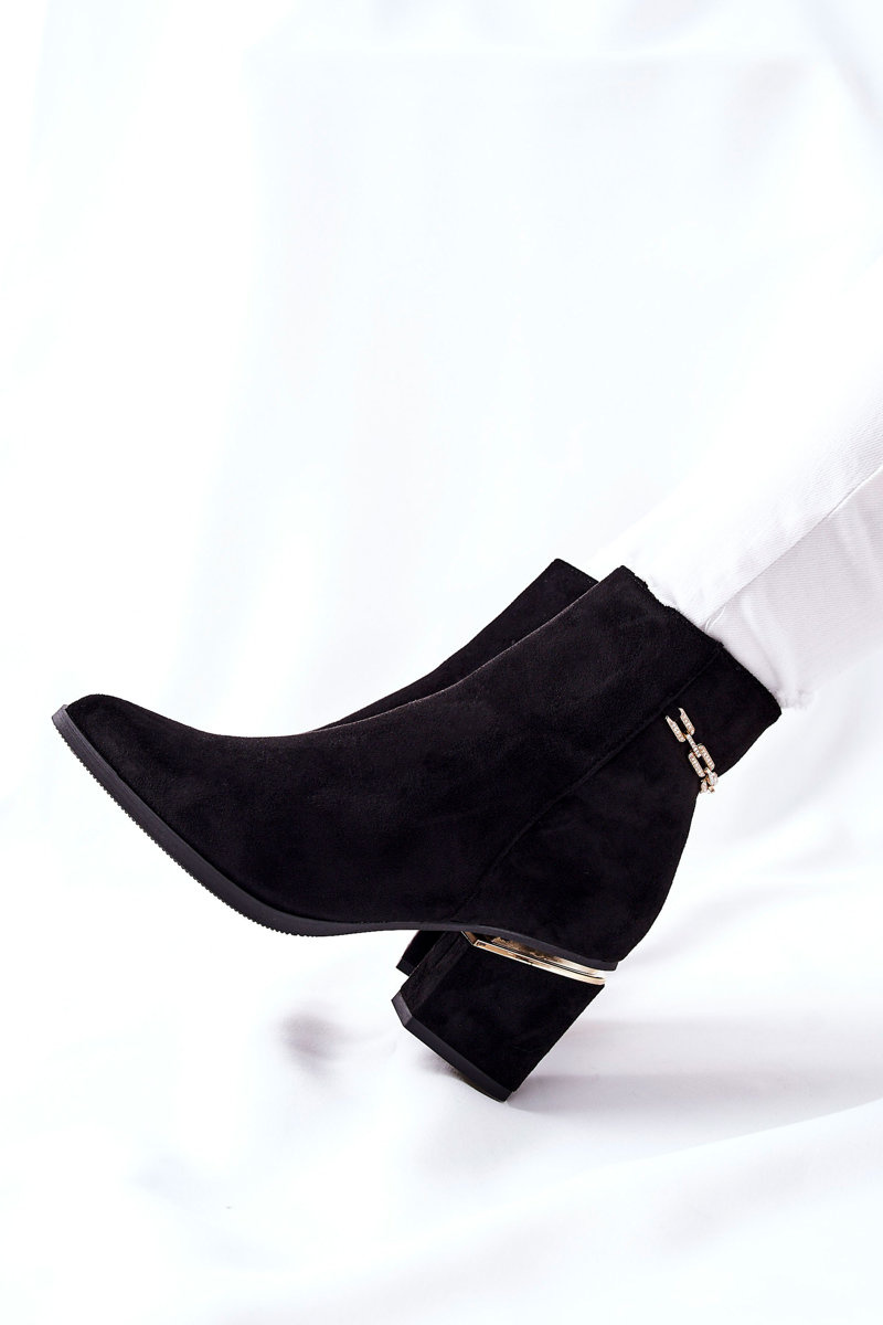 Damskie Zamszowe Botki Na Słupku Czarne One Step
