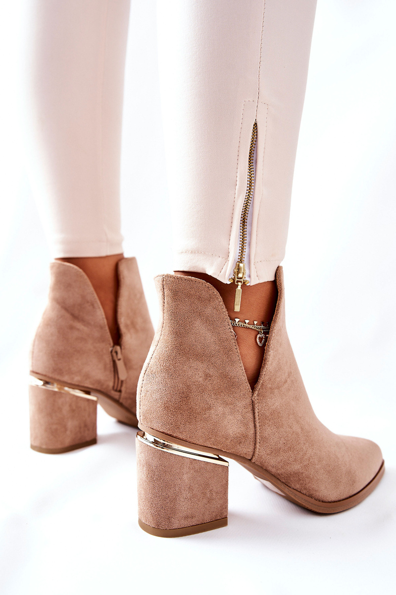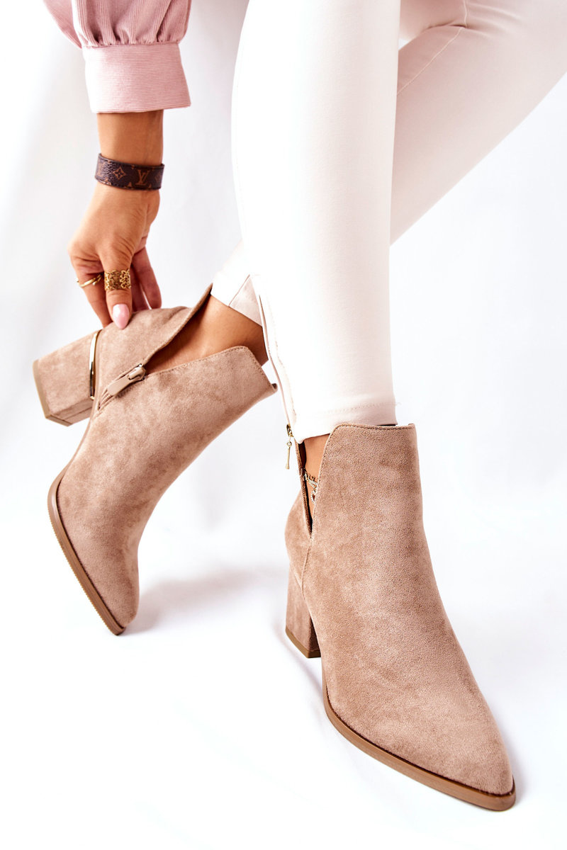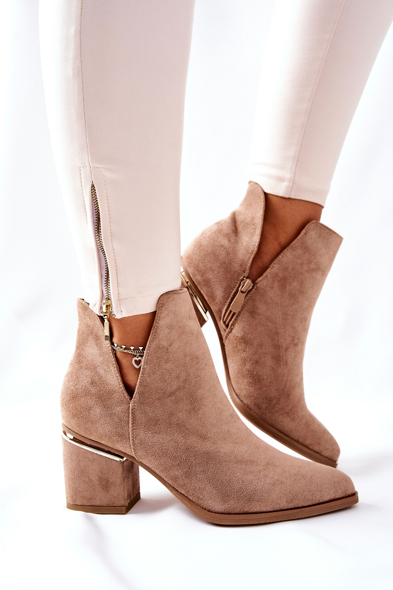 Damskie Zamszowe Botki Z Wycięciami Khaki Noel