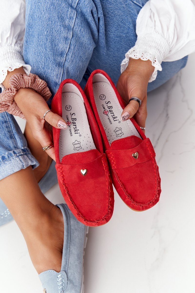 Damskie Zamszowe Mokasyny S.Barski Czerwone