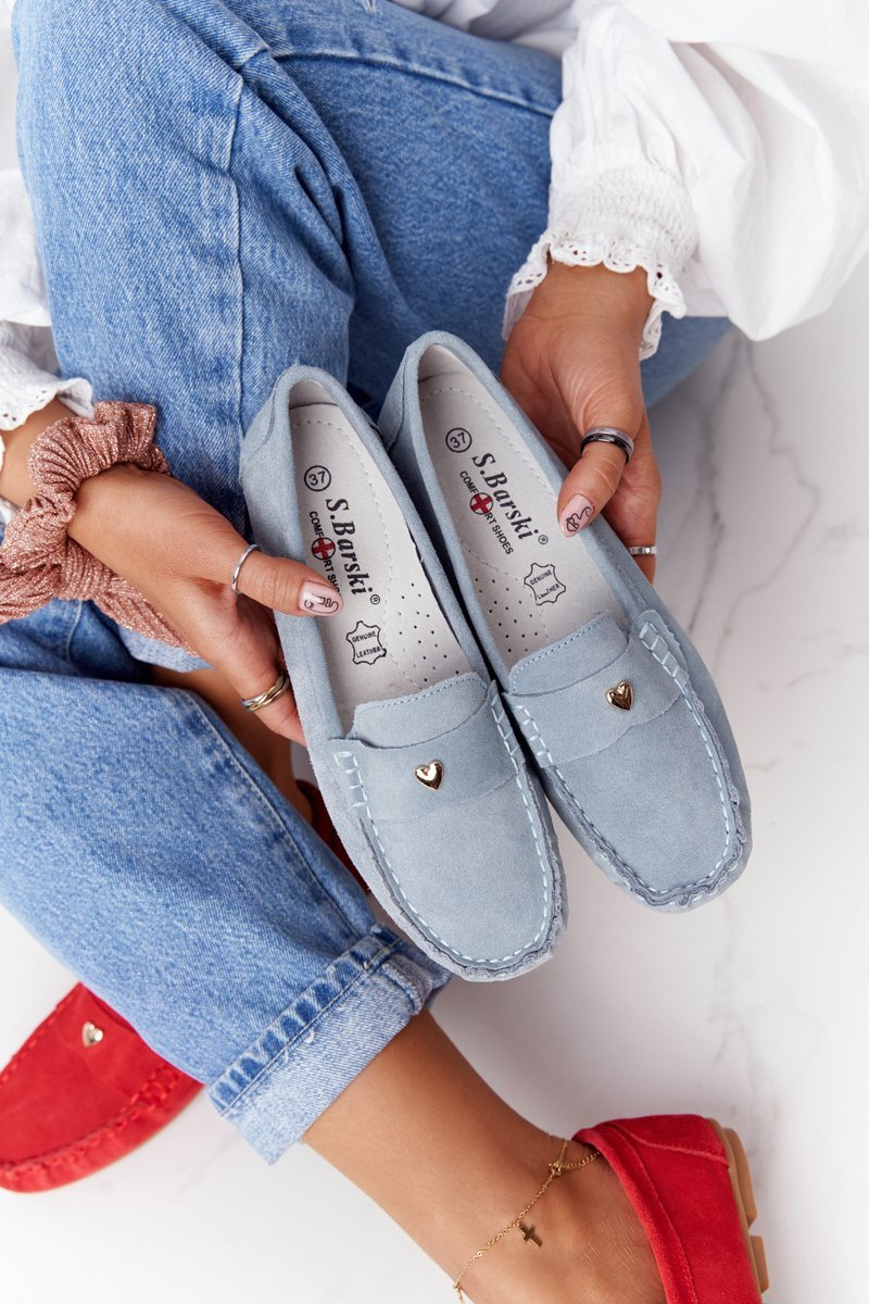 Opinie o Damskie Zamszowe Mokasyny S.Barski Niebieskie