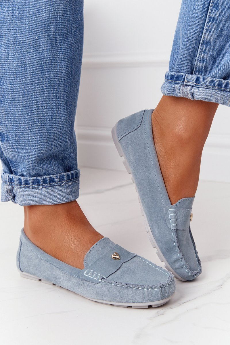 Damskie Zamszowe Mokasyny S.Barski Niebieskie