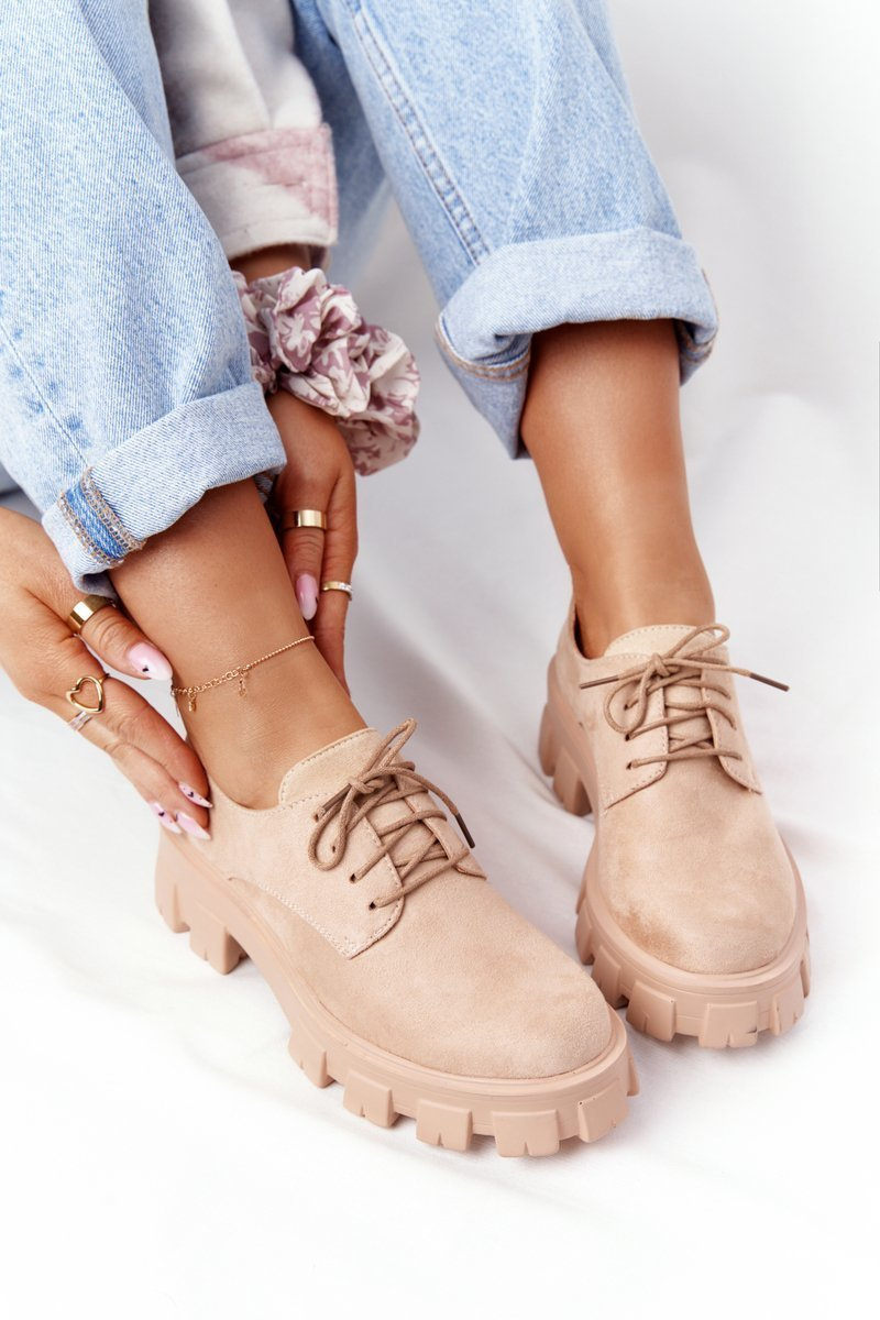 Damskie Zamszowe Półbuty Oxfordy Na Platformie Nude Imogen