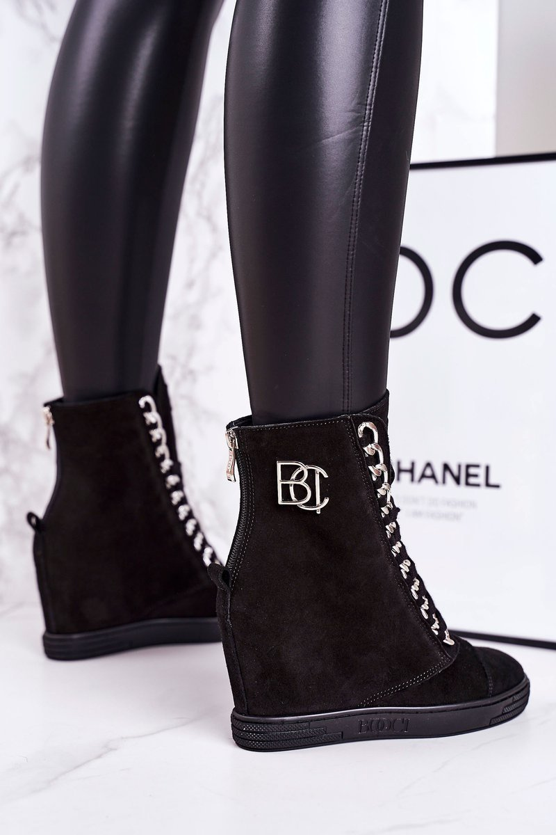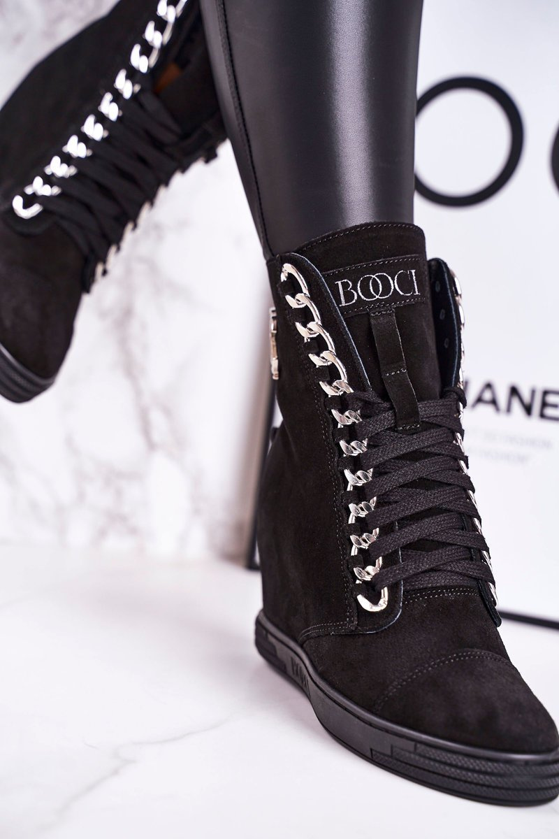 Damskie Zamszowe Sneakersy BOOCI 2222/066/s Srebrny Łańcuch Czarne