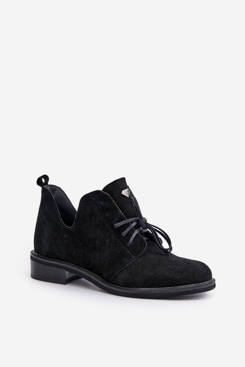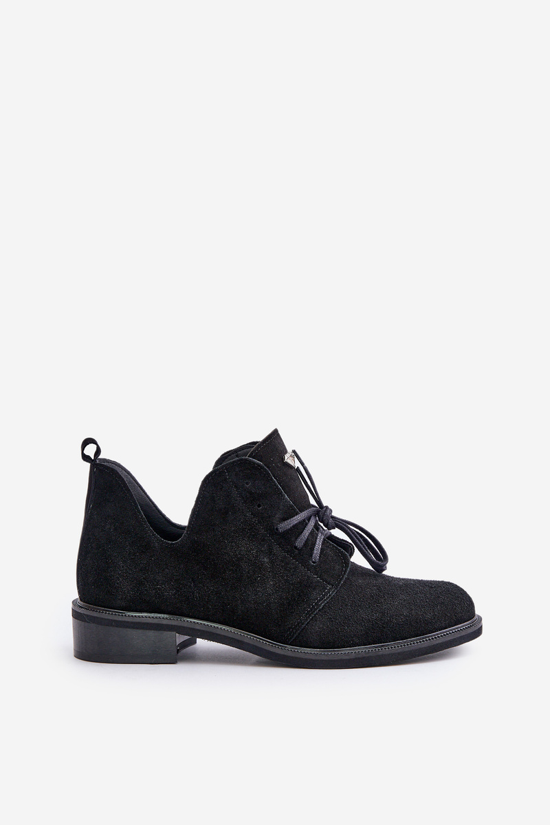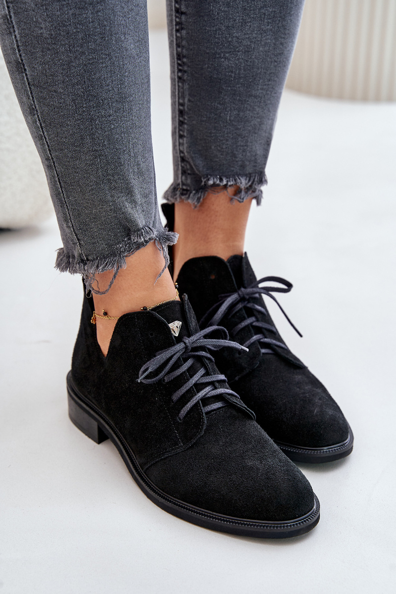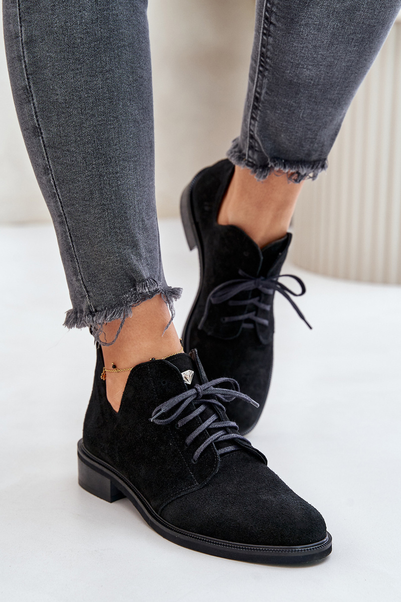 Damskie Zamszowe Sznurowane Półbuty Oksfordki Na Płaskim Obcasie Zazoo 2959 Czarne