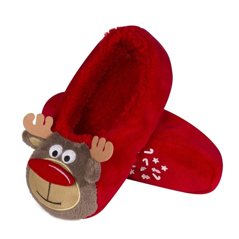 Domowe Damskie Baleriny SOXO Świąteczne Renifer Czerwone