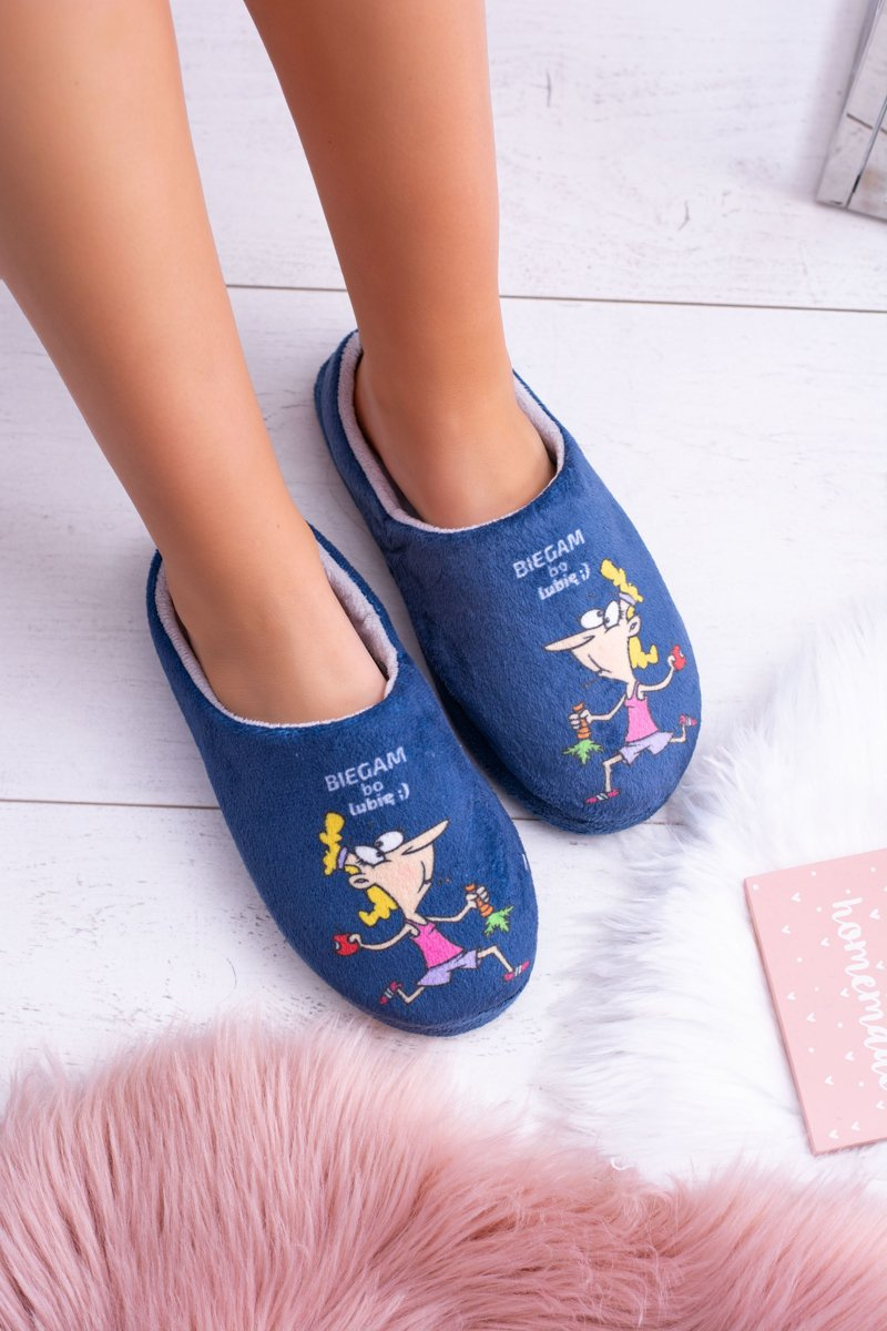 Dreex Pluszowe Damskie Granatowe Papcie Biegam Bo Lubię
