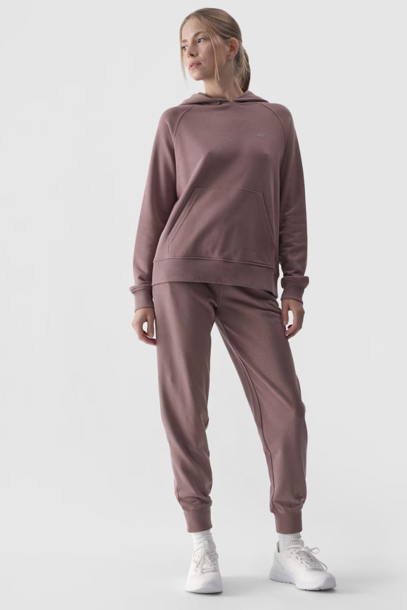 Dresowa Bluza Damska Z Kapturem Nierozpinana 4F 4FWMM00TSWSF1468-83S Beżowa