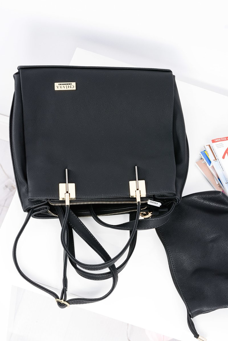 Duża Czarna Torba Damska + Saszetka + Lustereczko POLSKA