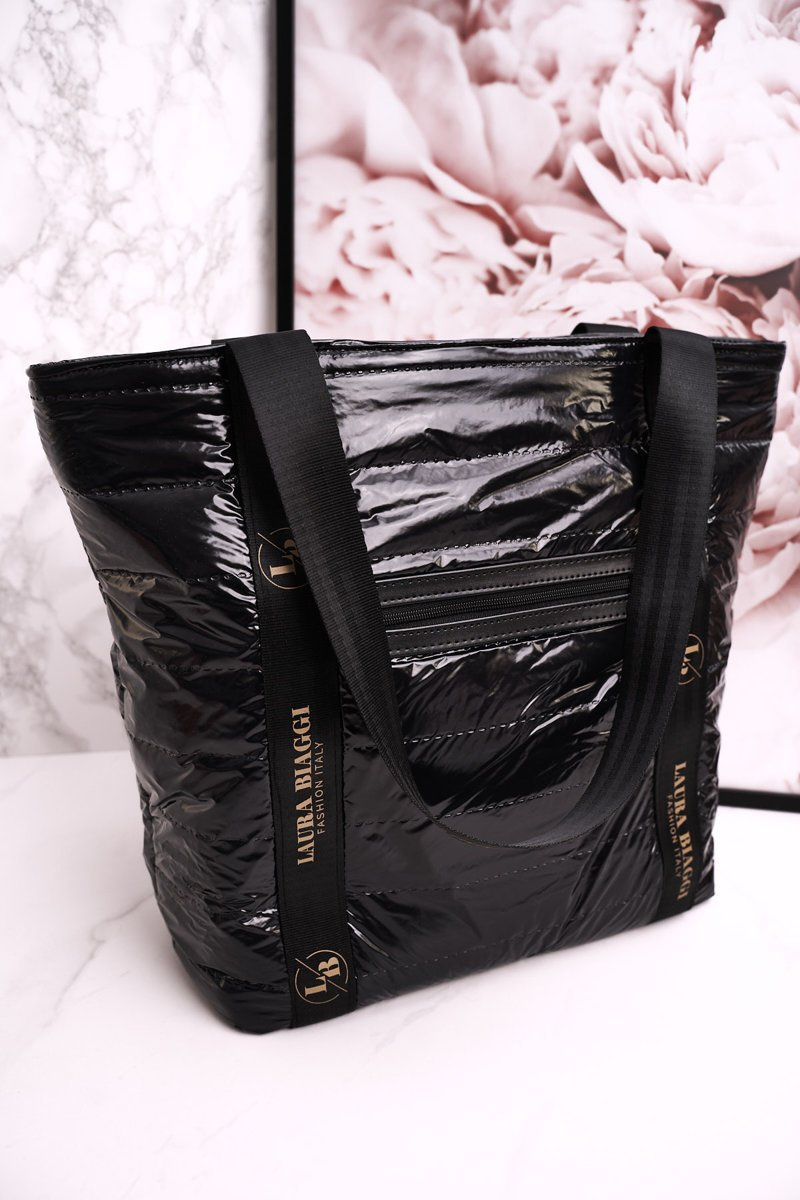Duża Torba Shopper LAURA BIAGGI Czarna Złote Logo
