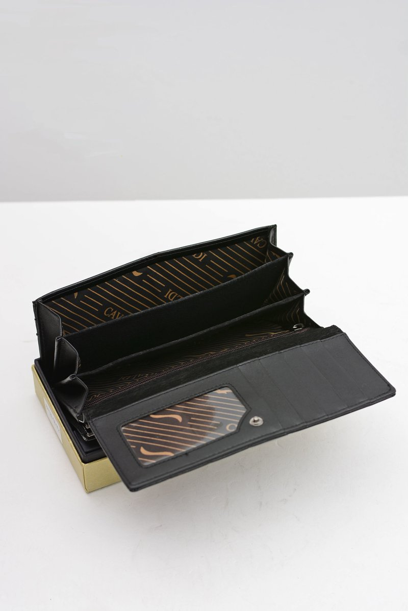 Dopełnieniem każdej kobiecej stylizacji jest nie tylko torebka i buty ale również dobrze dobrany portfel. Portfel wykonany z najwyższej jakości ekoskóry, wnętrze pokryte jest skórą naturalną, dzięki czemu staje się on jeszcze bardziej wytrzymały. Posiada kieszeń zapinaną na nap w której znajdują się następujące przegródki: