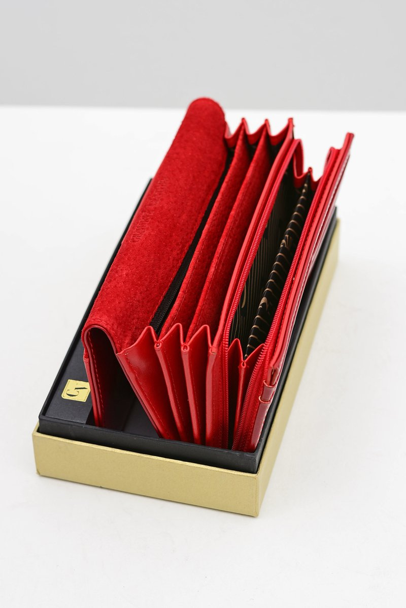 Dopełnieniem każdej kobiecej stylizacji jest nie tylko torebka i buty ale również dobrze dobrany portfel. Portfel wykonany z najwyższej jakości ekoskóry, wnętrze pokryte skórą naturalną dzięki czemu portfel staje się bardziej wytrzymały. Posiada kieszeń zapinaną na nap w której znajdują się następujące przegródki: