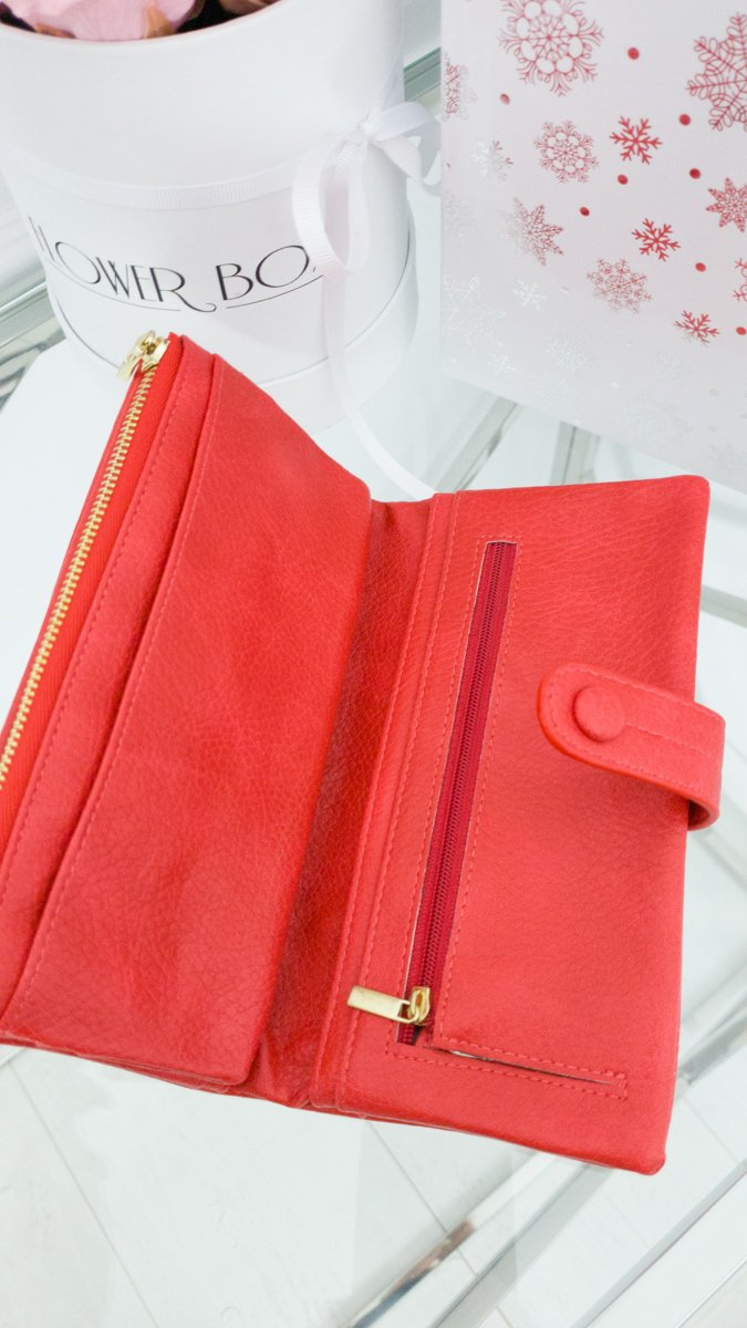 Przedstawiamy piękne portfele dla eleganckich Pań, dostępne w kilku cudownych kolorach. Produkty te charakteryzuje wyjątkowa prostota i elegancja. Wykonywane są przy użyciu najwyższej klasy materiałów. Staranne i piękne wykończenie każdego portfela oddaje niesamowitą dbałość o detale oraz modowy gust. Portfel posiada zapinanie na zatrzask. Wewnątrz znajdują się trzy kieszonki zapinane na zamek oraz masa mniejszych przegródek.