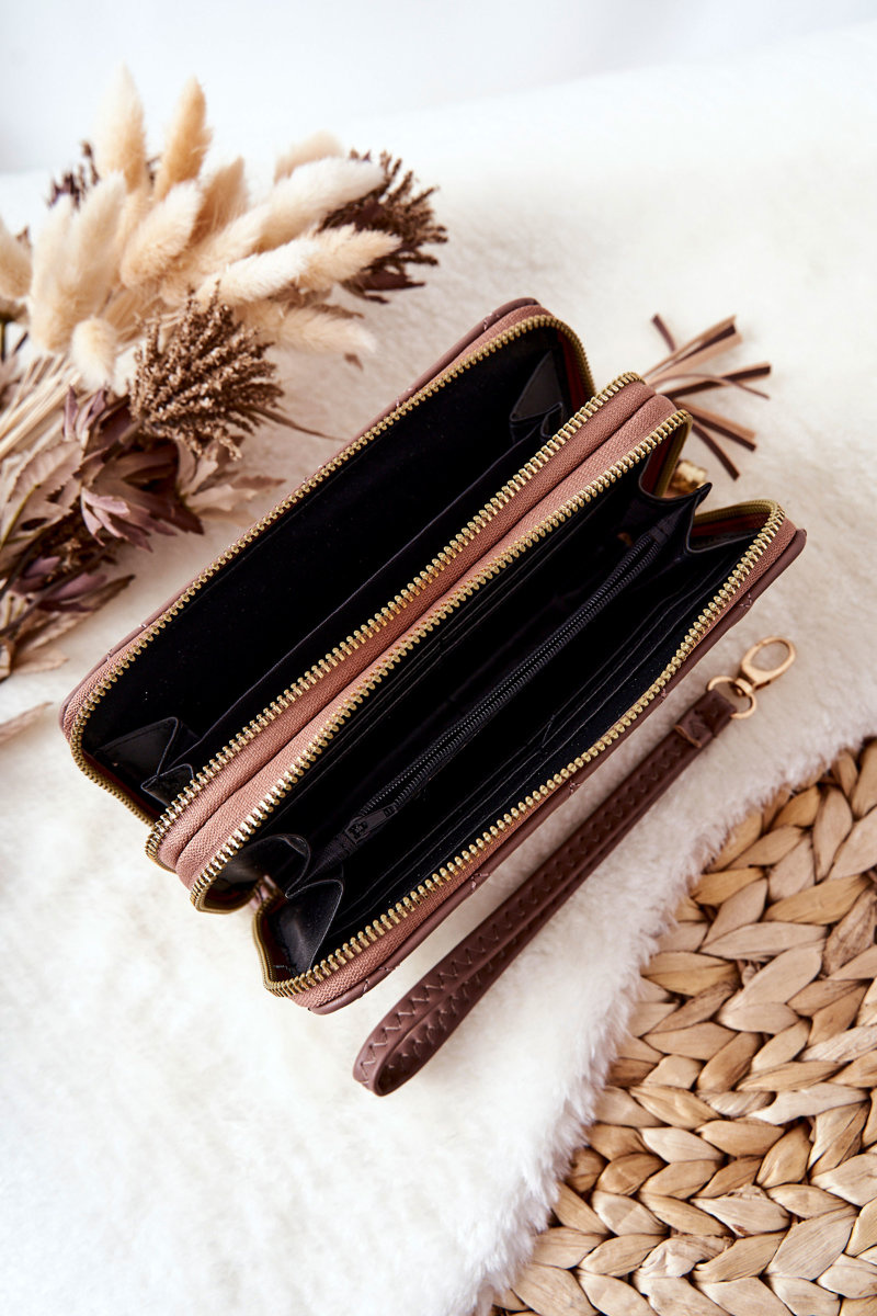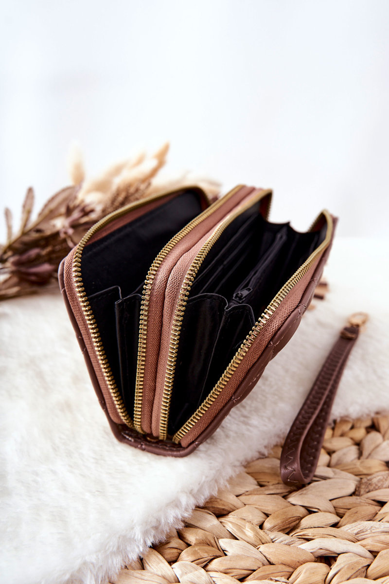 Duży Pikowany Portfel Na Suwaki Cappucino