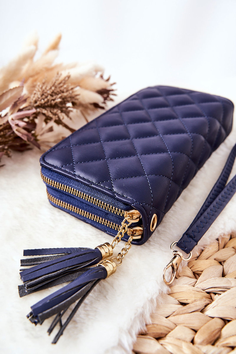 Duży Pikowany Portfel Na Suwaki Granatowy