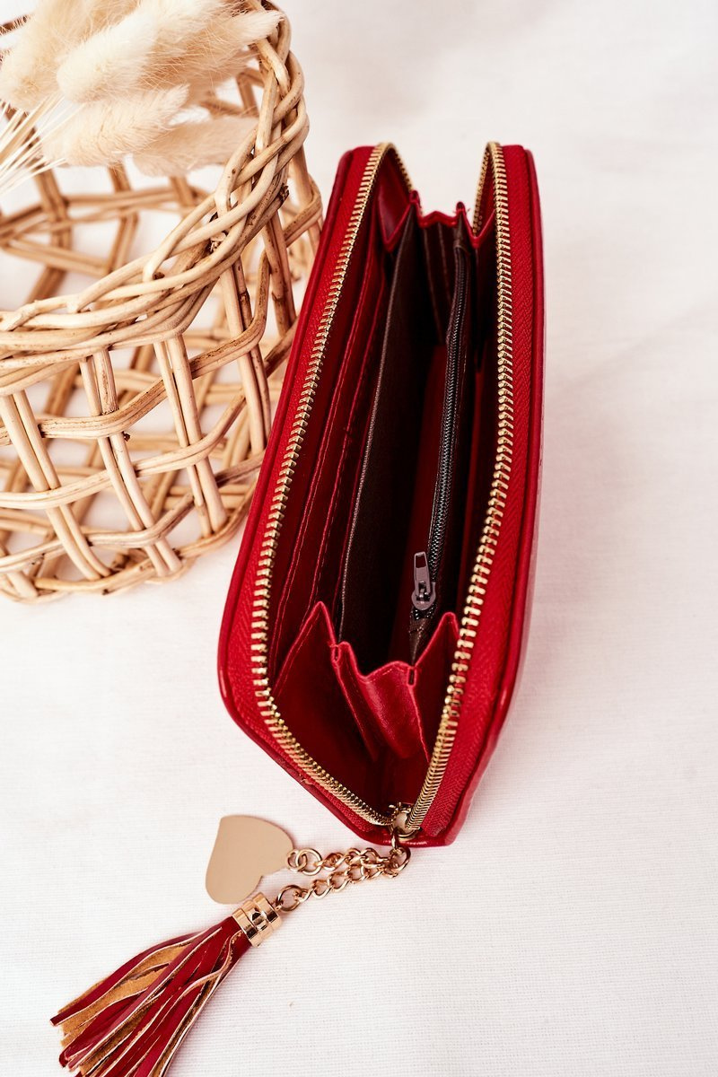 Duży Portfel Damski Z Breloczkiem Czerwony