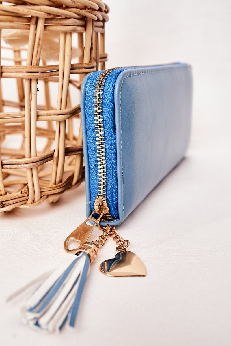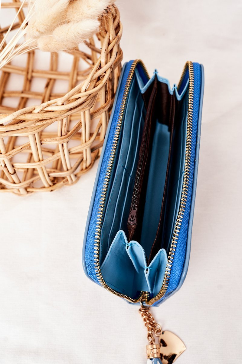 Duży Portfel Damski Z Breloczkiem Niebieski