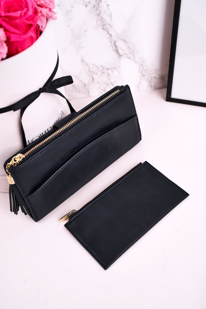 Duży Portfel Damski Z Dodatkową Portmonetką I Frędzlami Granatowy